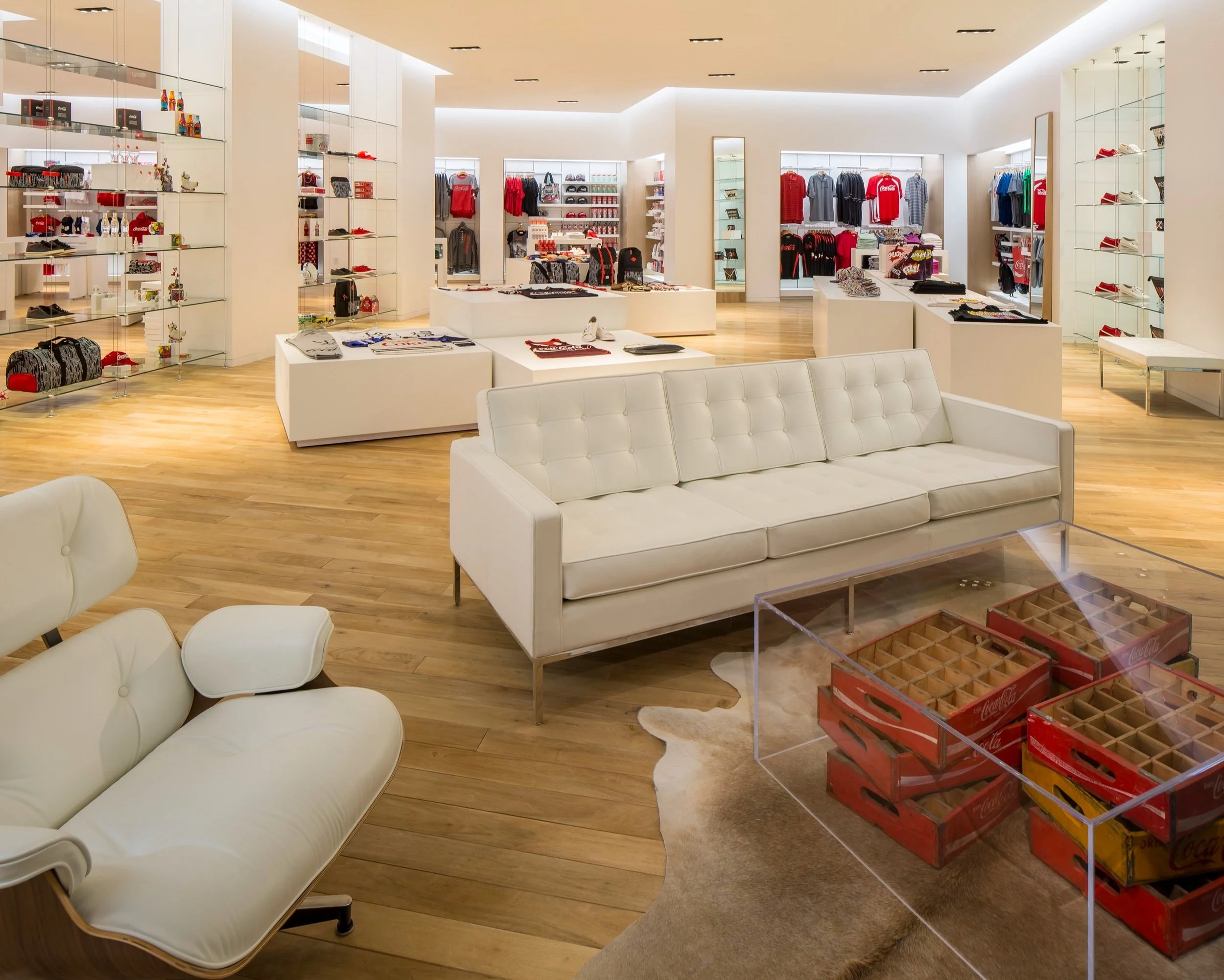The retail space inside Coca Cola’s global headquarters is an opportunity to experience different aspects of the brand, to show off artist collaborations, fashion forward expressions, and put a more sophisticated side of the brand on display. The minimalist, bright, clean set up of the space allows for the product to stand out while curating a few unexpected moments for the consumer.