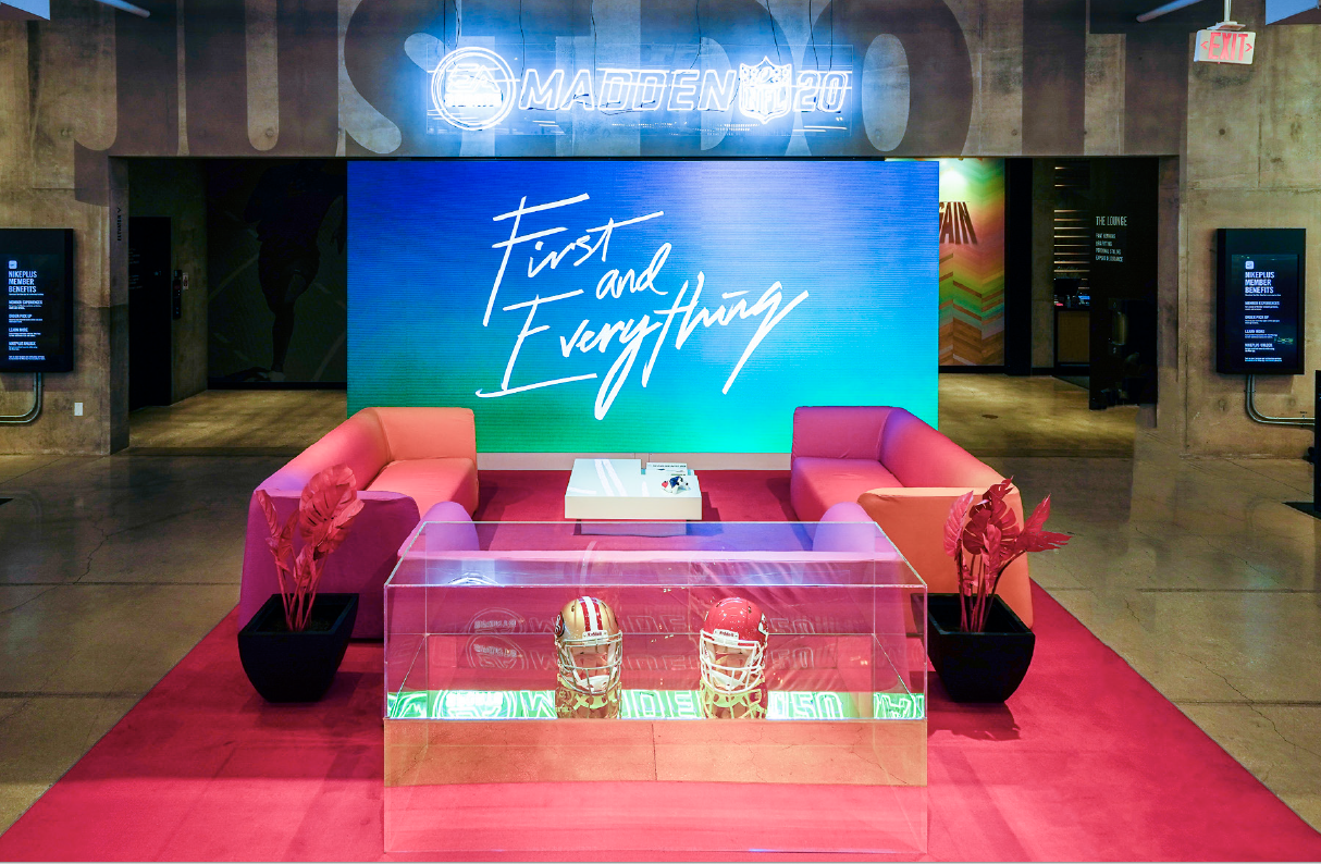 Celebrating an event like the Super Bowl requires connecting dots for the consumer, the brand, and the brand partners that will be activating together throughout Super Bowl week. This meant creating unique spaces for NFL and EA partnerships, VIP experiences, and brand partnerships within the Nike campaign vernacular.